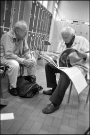 FRANCE. Paris. 18th arrondissement. Magnum annual meeting. Burt GLINN and Thomas HOEPKER. Friday 28th June, 2002.