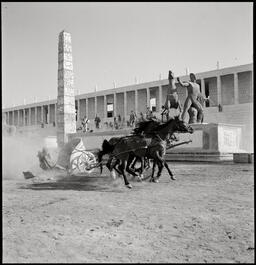 ITALY. Lazio. Rome. 1953. Shooting the chariot races on set of Hippodrome for Teodora - Slave Empress of 1954 / Théodora - impératrice de Byzance. Safa Palatino Studios.