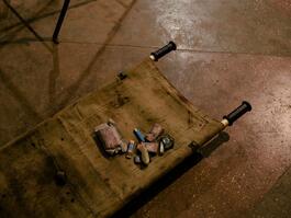 UKRAINE. Bakhmut. 22 January 2024. Injured Russian soldiers at a hospital underground in Bakhmut, close to the frontlines.