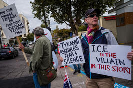 USA. Portland, Oregon. October 10, 2025. Protests outside the Immigration & Customs Enforcement (ICE) facility.