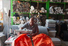 JORDAN. Amman. 01 August 2025. A textile manufacturing plant that makes parachutes used to drop humanitarian aid into Gaza, mainly from the UEA.