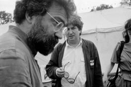 GREAT BRITAIN. Berkshire. Bracknell. South Hill Park. 11th edition of the Bracknell Jazz Festival. From left to right, British jazz musicians Evan PARKER (saxophones) and Tony COE (saxophones, clarinets). In the backstage. Sunday 6th July, 1986.