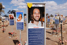 ISRAEL. Negev, Reim, the 1st of October 2025. On the site of the Nova music festival where 379 young people were killed and hundreds injured on October 7, 2023. Relatives and friends have mounted pictures of those killed and often come to pay tribute.