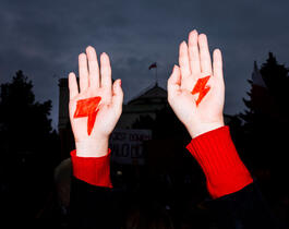 The sixth day of protests against the introduction of a more restrictive abortion ban. Crowds protesting in front of the Polish parliament building.