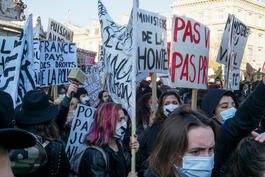 FRANCE, Paris, 2020/11/28. Demonstration during the second wave of the COVID-19 confinement, against the planned introduction by President E.Macron and Interior Minister G.Darmanin of a new "global security" law punishing the filming, photographing and publishing of pictures of identifiable police. Weekend after the publication of a video of police violence and the violent dismantling of a migrant camp.