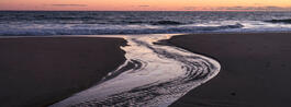 USA. Cape Cod, Massachusetts. January 1, 2021. Largely sequestered on Cape Cod these past nine months, I’ve been wandering my childhood beaches with a panoramic camera, following the subtle movements of wind and water, time and tide. Called Waves, it’s a collaborative project with my wife and creative partner, the poet and photographer Rebecca Norris Webb. On New Year’s Day before dawn, I left Rebecca at her writing desk as I revisited one of my favorite ocean haunts, Cahoon’s Hollow Beach. I was particularly drawn to the warm glow of first light reflecting in the swirling, ever-shifting waters at low tide. When I returned, Rebecca shared these words she’d written: “How does hope shine its red buoy to guide us without its wick inside, loss?”