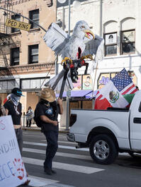 USA. California. LA. June 14, 2025. No Kings day protest in downtown Los Angeles.