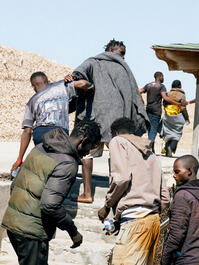 ITALY. Lampedusa. May 27, 2025. Migrants just arrived reciving...