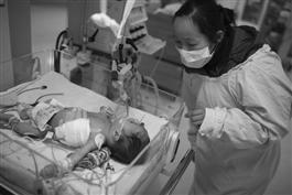 CHINA. Guangzhou. Guangdong Provincial People's Hospital. Mother visiting her baby in the critical care unit. 2008.