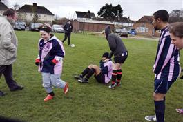U.K. ENGLAND. Dulwich Hamlets supporters, including some women from Peckham, playing a charity match. March 2008. Cold and windy pre match. 2008