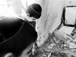 Israel. Sederot 2009. Boys Playing with the remains of a Kassam...