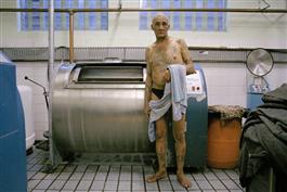 SOUTH AFRICA. Cape Town. 2004. Jonny Fortune baths in the industrial washer in the laundry at Pollsmoor Maximum Security Prison. He prefers this to the communal showers.