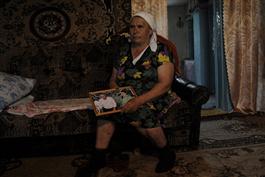 RUSSIA. Chelyabinsk Region. Muslimovo. July 2007. Site where 1957 nuclear accident, Majak 1, took place. Women whose husband died of radiation related cancer.