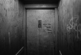 GB. England. London. A project sponsored and exhibited by The Photographer's Gallery to photograph London by Night. Peter Marlow chose as his main focus "The Isle of Dogs', in the London Docklands, which has now, many years later, been transformed by massive commercial and residential development, making this a unique and historic record of London's dockland past. Lift in a council estate.