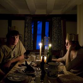 GB. England. Suffolk. A family Christmas at 'The New Inn', a Landmark Trust Property in Peasenhall, Suffolk. Peter Marlow with family, Fiona Naylor, and children Max, Felix and Theo. Christmas Day supper. 2007