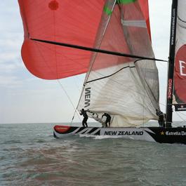 SPAIN.Valencia. Teams practice race before the regatta starts...