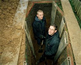 GB. England. London. The North Circular. Gunnersbury Cemetery. Grave diggers. 2001.