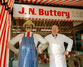 GB. England. London. The North Circular. Green Lanes. Butcher Bill Bailey. 2001.
