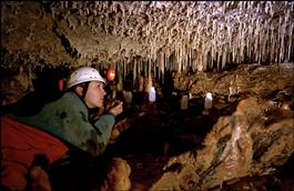 G.B. SCOTLAND. Inchnadamph. Catherine Jex checks the chemical composition of stalagmites to assess past weather conditions. 2004