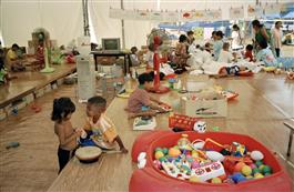 THAILAND. Phang Nga Province. Ban Muang Refugee Camp. Volunteers have set up a large play tent for children after the tsunami. 2005.