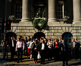 G.B. ENGLAND. London. Financial District. A gardener trims the...