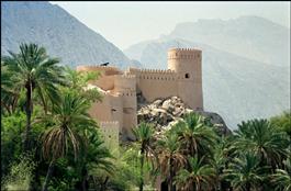 OMAN. Nakhal. The Nakhal Fort is perched on a rocky prominence in the foothills of the Western Hajar, standing guard over a verdant oasis and commanding 360 degree views over the surrounding countryside. 2004.