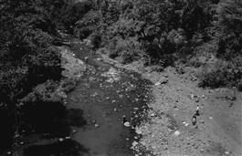 KENYA. Not only the wildlife is dependent on the water supply provided by Mount Kenya and Kilimanjaro. Villagers carry water from the Narumoru River for their daily needs while their cattle graze on any vegetation they can find on the rocky banks. An estimated three million people rely directly on the mountains for their water. 2004.