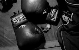 G.B. ENGLAND. London. The Real Fight Club. At the Marriott Hotel during the Christmas Bash City Brokers event, where some of the most influential protagonists of the financial world take a chance having a real boxing match. A Rolex watch between gloves. 2003.