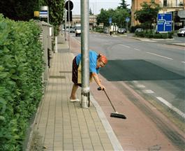 ITALY. Brescia. Old lady sweeping road in the village of Sereno. 2003.