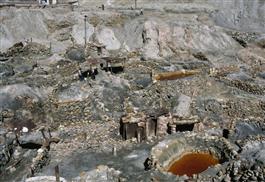 BOLIVIA. South America. Chemical pools among the maze of small plots where people extract more tin from the waste of miners, Siglo Veinte. 1984