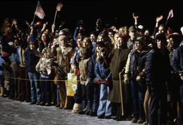GERMANY. Wiesbaden. American hostages arrive back from being held in Iran. 52 Americans were held hostage for 444 days from November 4, 1979, to January 20, 1981, after a group of Islamist students and militants took over the American Embassy in Tehran in support of the Iranian Revolution. They were finally realeased after the United States agreed to release several billion dollars in Iranian gold and bank assets, frozen in American banks just after the seizure of the embassy and returned to Wiesbaden US airforce base in January 1981.