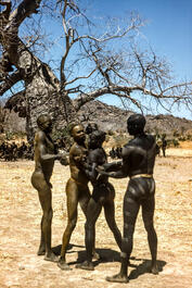 Africa. Sudan. South Kordofan state. 1949. The Nuba people. Bracelet fighters from the Kao-Nyaro tribe. They wear lethal bracelets, each weighing 2 kilos with two inch double flanges. The function of the bracelet seems to be to crack open the skull of the opponent.