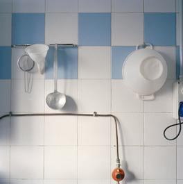 Chiesa Valmalenco, the Cheese making parlour on the farm of Alberto and Claudio Lenatti. Utensils to make Casera cheese.