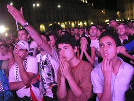 ITALY. Turin. Big screen at Piazza Castello, UEFA final soccer match, Milan vs. Juventus. 2003.