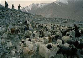 INDIA. Ladakh. Khema. Pashmeena goats returning home. 2004.