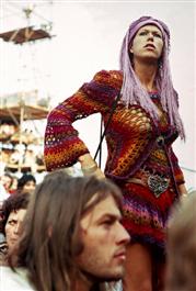 GB. ENGLAND. Isle of Wight. Pop festivals bring out the wildest forms of dress sense. In the foregound sits Pink Floyd guitarist David Gilmour. 1969.