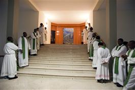 ITALY. ROME. Feburary 2009. Vatican. The Clericus Cup. Matches played at Oratorio St Pietro. Priests undergoing further training perform mass at Collegio St Paolo, who field one of the competing teams.