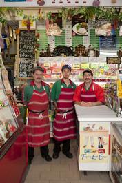AUSTRALIA. Fremantle. Franks Gormet Meats. Paul Fitzgerald (grey hat), Guy Barrington (blue hat) and Frank Carbone. 2011.