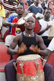 GHANA. ACCRA. 2010. Accra Hearts of Oak play Liberty at the Ohene Djan Stadium. Hearts lost 2-3 in a Premier League match. Hears supporters, Chapter 15 drum and sing their support. They have been going since 1972.