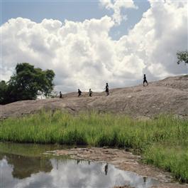 UGANDA. Amuria. 2008Boys run to the water hole on Toronogwe rock...