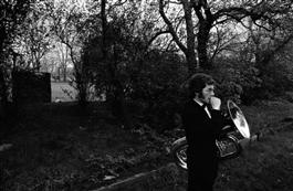 GB. England. Blackpool. A Bandsman practising before an event. 1970.
