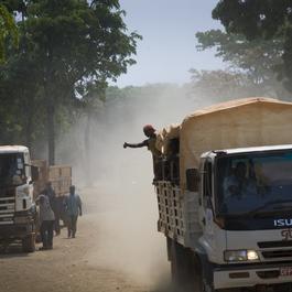 Trucks arrive in Nyarugusu and the refugees face spending their first night in the open. Officials process the families arriving with strict controls over what materials are issued to help them build new houses and shelters. On the first night they are given one meal of maize porridge per person, String, Plastic sheeting, poles, bricks and other materials to build a temporary shelter for the first night.