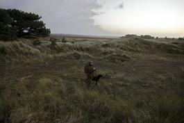 G.B. ENGLAND. Holkham estate. Wildfowling on salt flats near Wells Next the Sea. 2012.