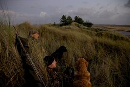 G.B. ENGLAND. Holkham estate. Wildfowling on salt flats near Wells Next the Sea. 2012.