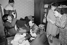 RUSSIA. Leningrad. 1988. Police examine possible drugs at a raid on a private apartment.