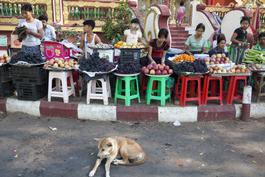MYANMAR. MAGWAY. Mya Tha Lun Pagoda and stallholders.