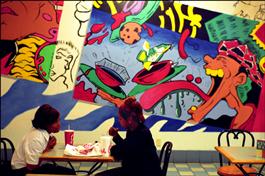 USA. Louisiana. New Orleans. a mural on the walls of the food...