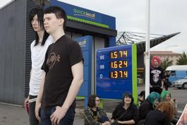 FINLAND. Helsinki. Punavuori. Teenagers queuing for the club Nosturi where Japanese metal band 'Dir en grey' are playing. 2011.