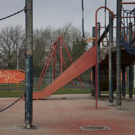 The playground where Liam Clarke, 20, hanged himself with his coat under the children's slide.
