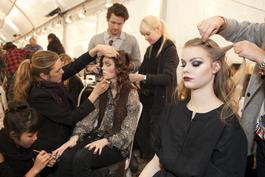 FRANCE. Paris. Fashion Week. Backstage of the Christion Dior catwalk. Models being prepared. 2011.